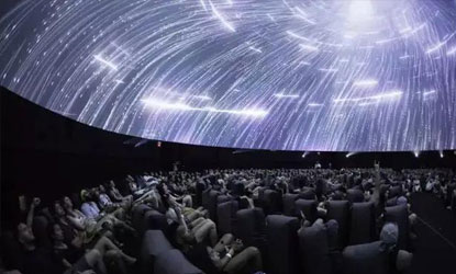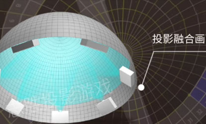 熒幕為半球形,由多臺投影設(shè)備投射的畫面無縫融合組成。